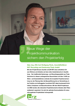 Neue Wege in der Projektkommunikation (Schwerpunkt Projektraum) RST Recycling und Sanierung Thale GmbH BRZ-Erfolgsgeschichte_RST_online Download Neue Wege in der Projektkommunikation (Schwerpunkt Projektraum) Referent BRZ Deutschland FINDEN SIE IHREN PERSÖNLICHEN ANSPRECHPARTNER